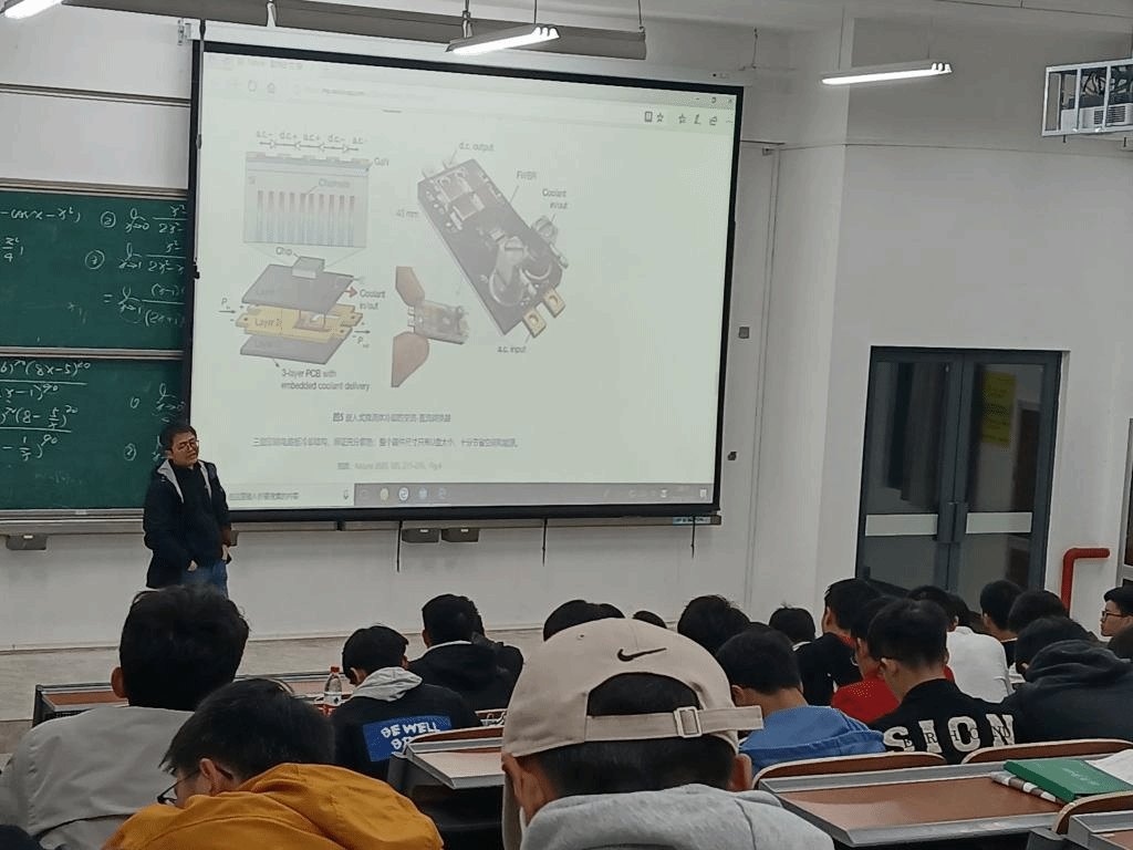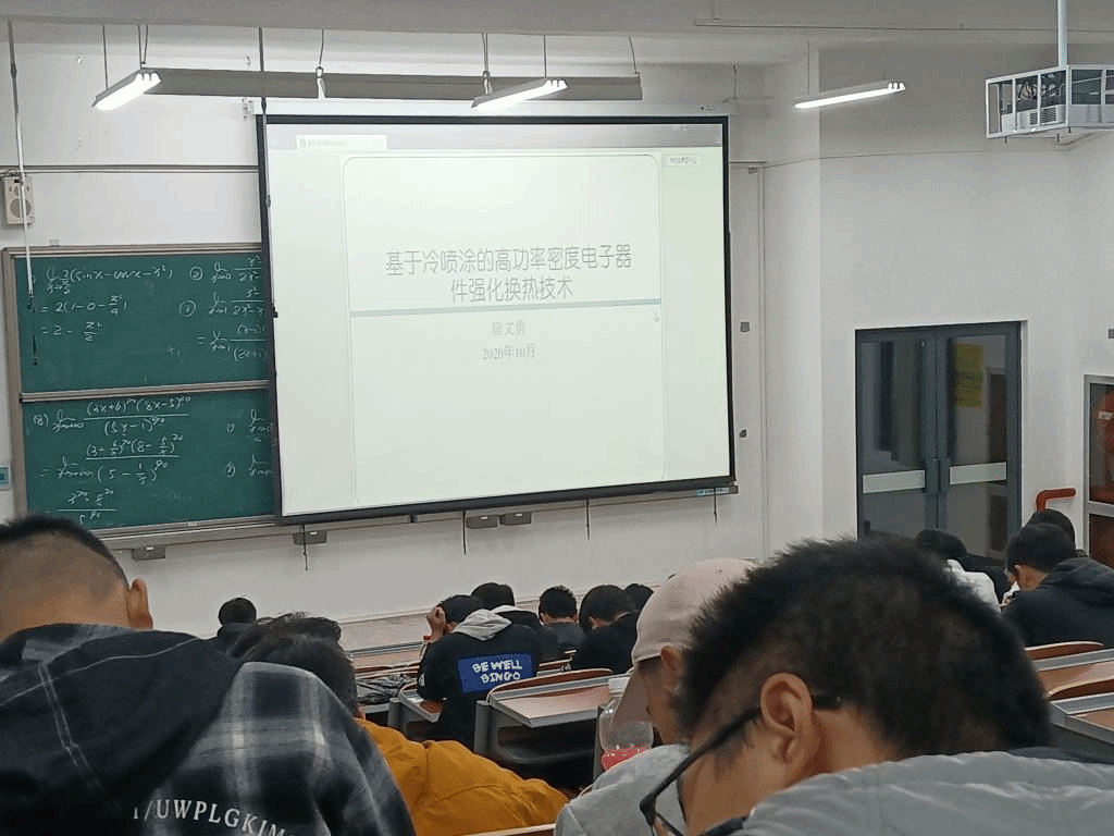 本网讯(人工智能与电气工程学院) 2020年10月23日,电气工程及其自动化专业全体20级新生在贵安校区天宫楼G2108教室观看由我院开展的“基于冷喷涂的高功率密度电子器件强化换热技术”讲座——“启梦•求知•成长”之科研启蒙大讲堂。本次讲座由我院副教授唐文勇担任主讲人。