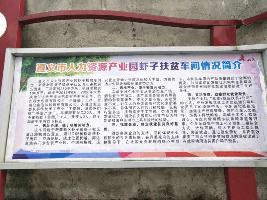 为解决搬迁群众就近就业问题,积极推动搬迁群众就业致富,新蒲新区虾子镇幸福小区积极招商引资,与遵义虎彩包装有限公司合作建成扶贫车间,主要进行酒类包装盒、包装袋的加工组装。在新建的扶贫车间里,71岁的黄成容正一边给酒盒子穿手提绳,一边和裴老二有一搭没一搭地聊着天。经介绍,裴老二孩子要上学,父亲早年瘫痪在床,需要有人照顾,她在家操持家务,丈夫在外打工赚钱维持家用,日子过得紧巴巴的。现在,裴老二把小孩送去幼儿园后,只需几分钟就能到车间上班,既能够照顾孩子和老人,又能挣挣钱补贴家用。说起现在的生活,裴老二满脸笑容,直夸党的扶贫政策好,为搬迁群众办实事。