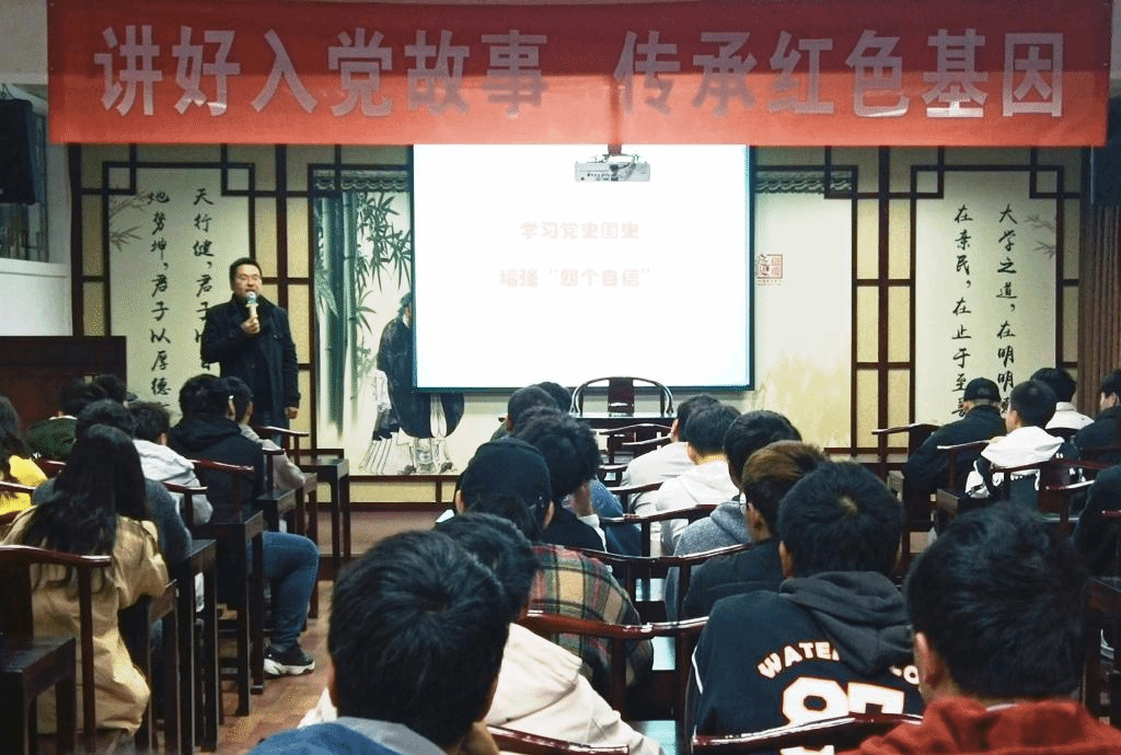 活动伊始,胡老师将中国共产党史、新中国史、改革开放史、社会主义发展史结合起来进行讲解,并强调“四史”之间有着不可分割的联系。他结合近代国内外重大事件,用具体鲜活的案例,全方位讲解了中国共产党带领中国从站起来、富起来到强起来的百年历史。就“五四运动”而言,新青年作为此次运动的中坚力量,他们挑起了当时救国的重担。而现在的我们应该勇挑强国建设重任,要不断加强历史担当,不忘昨日,开创美好未来。