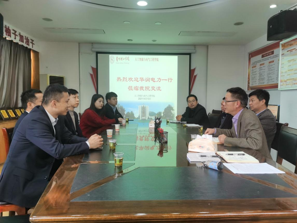 交流会上,陈海波对华润电力华南大区云贵公司进行简介。他说华润电力成立于2001年8月,2003年11月在香港联合交易所主板上市。华润电力是华润集团旗下香港上市公司,是中国效率最高、效益最好的综合能源公司之一,业务涉及风电、火电、光伏发电、水电、分布式能源等领域。陈总表示,未来几年,华润电力华南大区云贵公司将面向贵州招聘大量电气工程及其自动化专业毕业生,校企合作为公司未来发展注入新的动力,公司希望能在人才培养方面与我院进行深度交流合作。