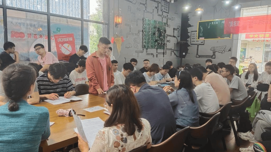 本网讯(人工智能与电气工程学院 曹磊)为进一步落实新时代党的建设总要求和新时代党的组织路线,加强和改进高校党的建设,引领当代大学生在建设和发展中国特色社会主义中献策献力,我院学生党支部于2021年6月9日下午在蜂巢开展“学习贯彻《中国共产党普通高等学校基层组织工作条例》”主题党日活动。会议由党支部书记郑玉娇同志主持,支部全体党员参与。
