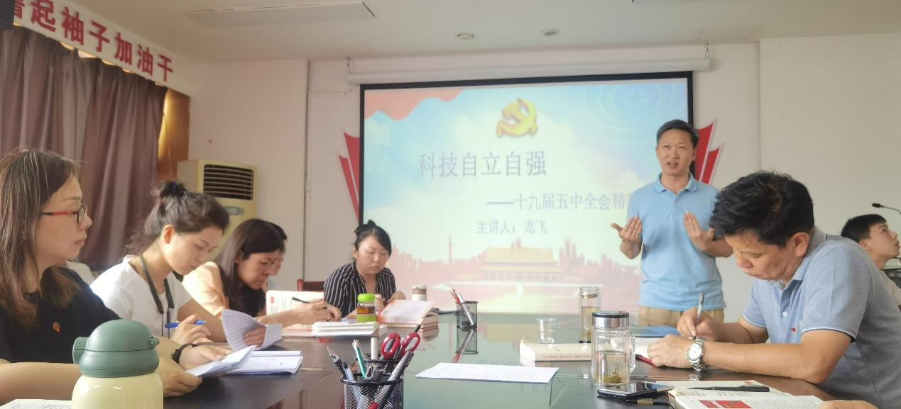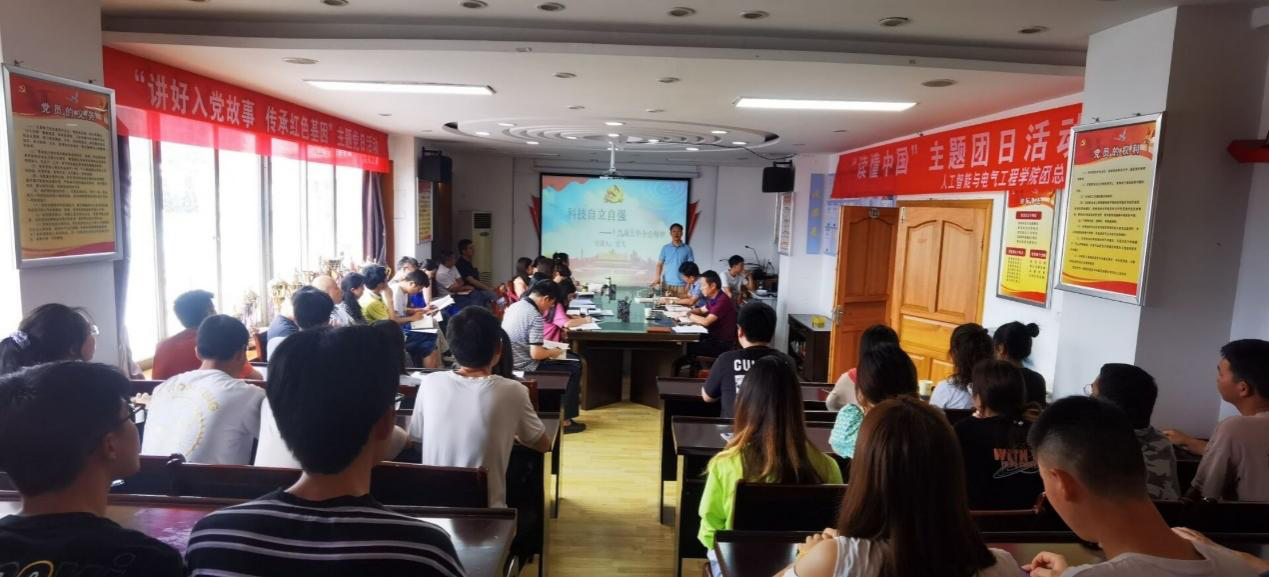 本网讯(人工智能与电气工程学院 刘帆/图文)6月23日下午,我院副院长龙飞在723会议室为全体师生党员做题为“科技自立自强—十九届五中全会精神”的党史学习教育专题党课。