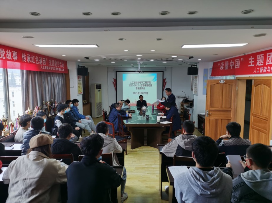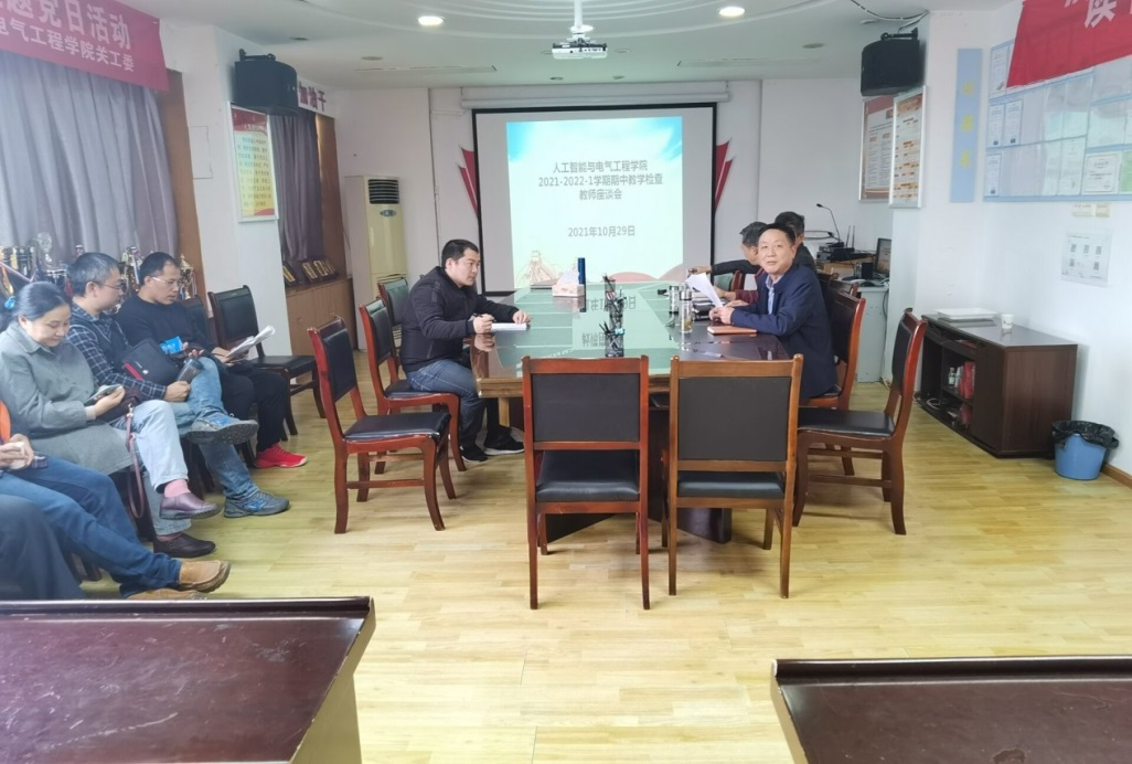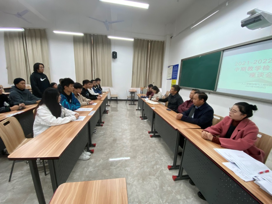 本网讯(人工智能与电气工程学院 文/张玉珠 图/张玉珠)为了进一步加强师资队伍建设,提高教育教学质量,改善日常教学管理,2021年10月28日、29日,人工智能与电气工程学院在贵安校区、蔡家关校区分别召开了2021-2022学年第一学期期中学生座谈会及教师座谈会。党总支书记刘承章、院长龙飞、副院长张均、各教研室主任、教学科研科科长、辅导员、我院全体教师以及各年级学生代表参加了本次会议。