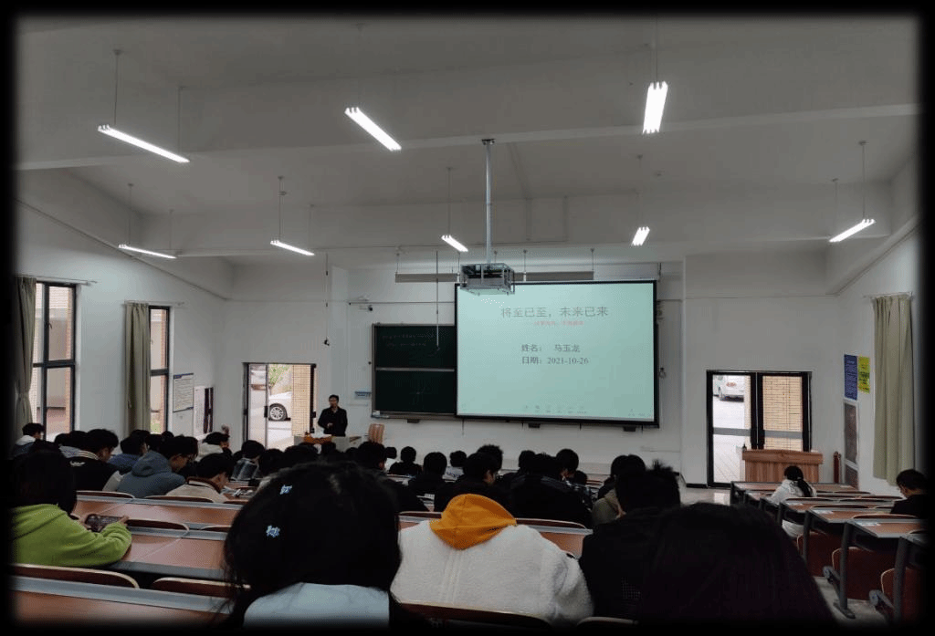 11月9日下午16点,我院科研启蒙大讲堂第9期《将至已至,未来已来》在贵安校区G1109教室如期举行。 本次讲座由学院马玉龙博士主讲,21级全体学生参加。