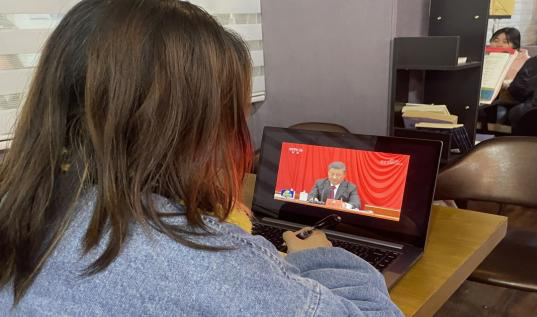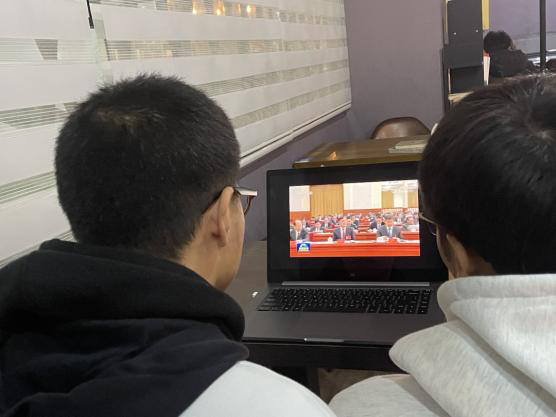 11月12日上午10时,我院团总支组织全体学生干部通过线上统一观看和线下自学相结合的方式观看中共中央就党的十九届六中全会精神举行新闻发布会直播。