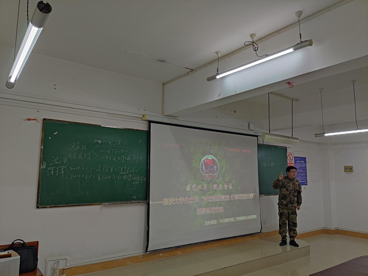 为深入贯彻落实党的十九大精神和习近平强军思想,加强征兵政策宣讲力度,提高征兵政策宣讲覆盖面,进一步做好2022年春季征兵工作,引导和激励更多学子携笔从戎,扛起时代担当,投身强军兴军伟业。我院邀请了学校武装部汪树穹老师,于2021年11月24日,在3教213教室开展了2022年春季征兵宣讲。各年级100余名同学参加了此次宣讲活动,在学生中营造了参军报国不负韶华的良好氛围。