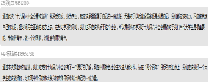 宣讲结束后,班级同学围绕十九届六中全会的重大意义和建党百年10个宝贵经验进行积极讨论和交流。