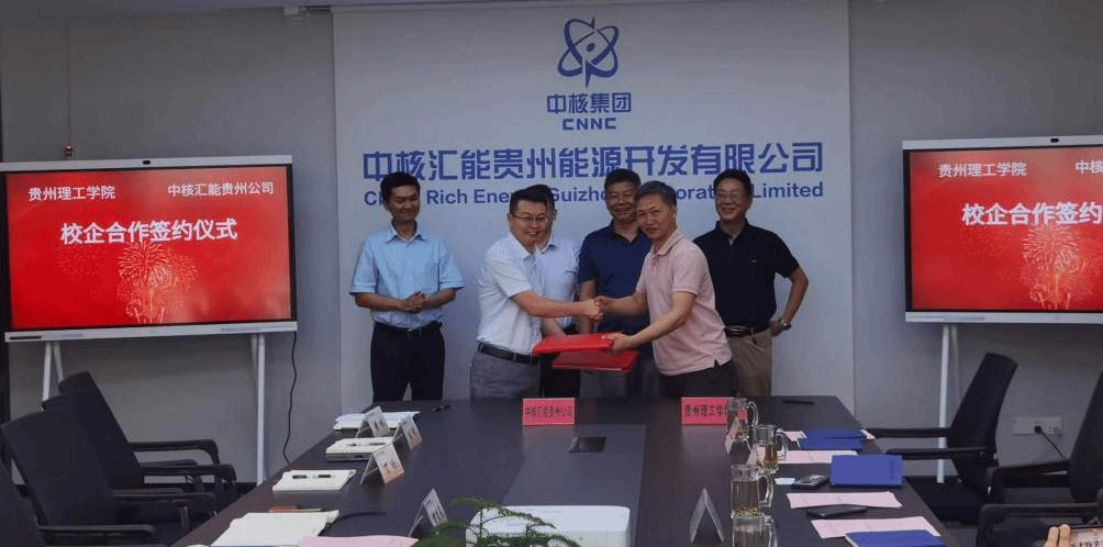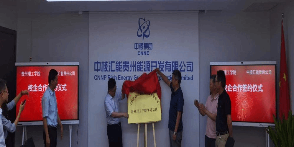 2022年7月7日,贵州理工学院人工智能与电气工程学院与中核汇能贵州能源开发有限公司校企合作签约暨实习基地揭牌仪式在中核汇能贵州能源开发有限公司会议室举行。中核汇能贵州能源开发有限公司副总经理朱冬主持,学院党总支书记刘承章、院长龙飞、副院长张均,中核汇能贵州能源开发有限公司执行董事、总经理袁旭光分别讲话并见证签约。