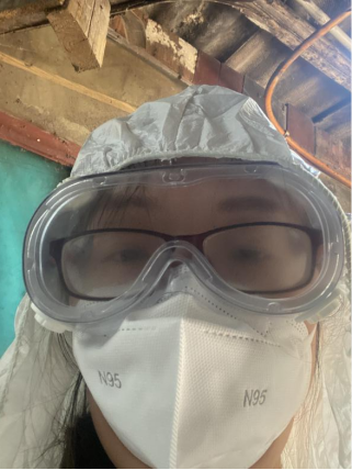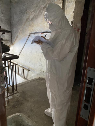 郭华华老师负责的是威清门片区鲤鱼街社区60户140余人的抗原测试材料发放。该社区是上世纪70年代的房屋居多,还有自建房和临时住所。居民以老年人,外来务工人员居多。他们文化水平偏低,对智能手机的使用不熟悉,所以志愿者除了发放抗原测试材料,还需要一家一家亲自指导示范使用方法。郭华华老师与同行的两名志愿者,穿梭在小街巷道里,为每一户人家做好详细,耐心的解答。挨家挨户发放,一层又一层讲解。志愿者花了3个小时60余户人家完成发放。下午,烈日当空,郭华华老师又穿着厚重的防护服,独自一人挨家挨户收取测试结果。当日气温31度,防护服内的衣服湿了一遍又一遍,护目镜也因为汗水变得模糊,郭华华老师还是坚持圆满完成任务。