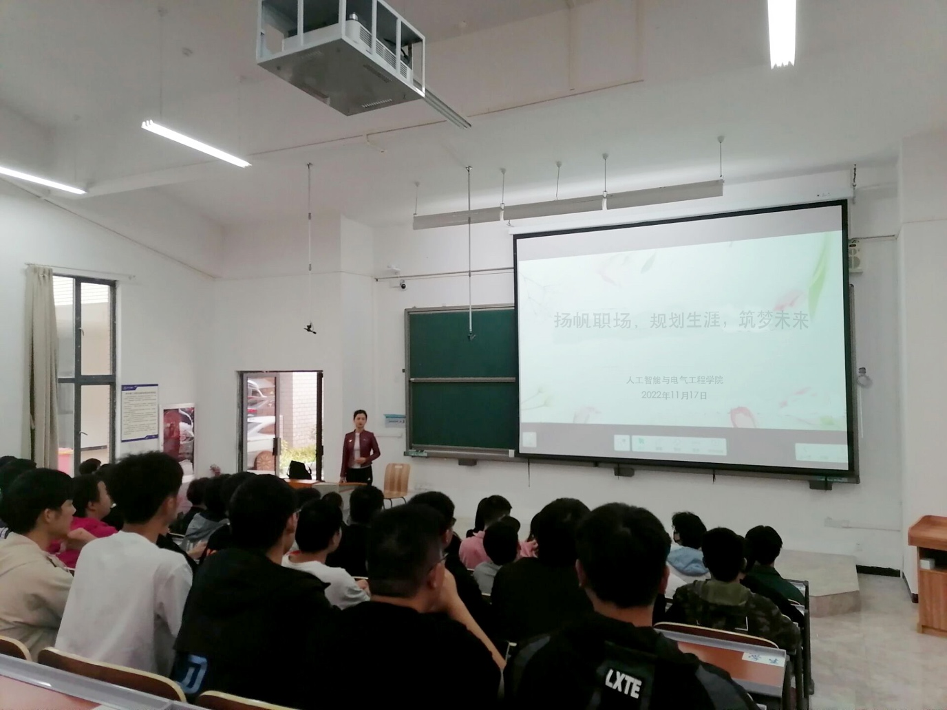 2022年11月17日中午13:10在贵安校区G1109,人工智能与电气工程学院21级辅导员沈洁老师开展了以职业生涯规划为主题的讲座。沈洁向同学们介绍了什么是生涯规划,并从为什么要制定职业生涯规划、职业生涯的不同阶段以及如何制定与实现三个话题与同学们共同探讨。