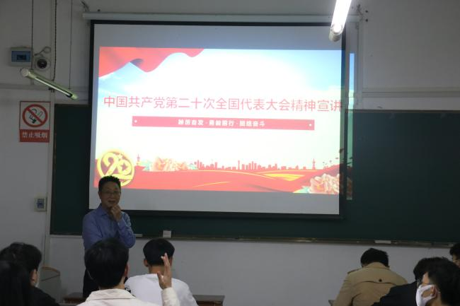 为全面准确深入学好党的二十大精神,2022年11月1日下午19点人工智能与电气工程学院组织了二十大宣讲团进班级开展二十大精神宣讲活动。本次二十大宣讲团成员由我院21名老师党员和6名学生预备党员组成,宣讲活动分别在蔡家关和贵安两个校区25个教室中举行,全院学生共同参与这场宣讲大会。