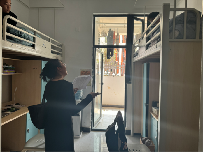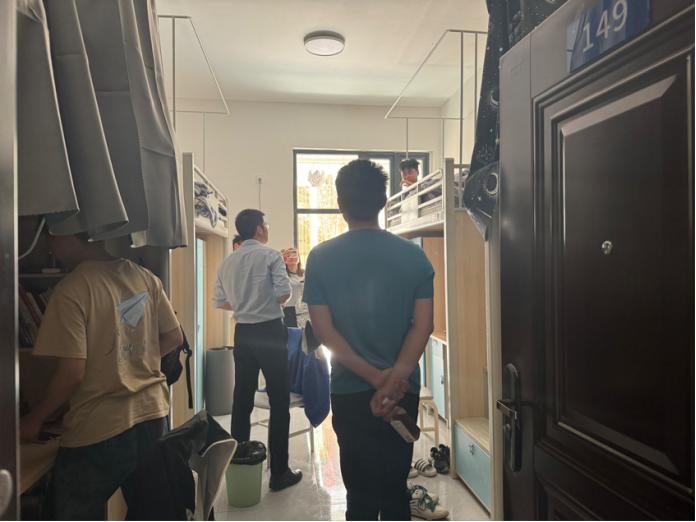 各年级辅导员、班主任一一走访学生寝室,了解学生清明假期去向,了解同学们目前在学习、生活中遇到的问题,及时为同学们答疑解惑、解决困难,提醒同学们在平常生活中务必注意财产安全、用电安全和人身安全,谨防诈骗;并叮嘱同学们加强寝室清洁管理,保持宿舍环境卫生,与舍友和谐相处。