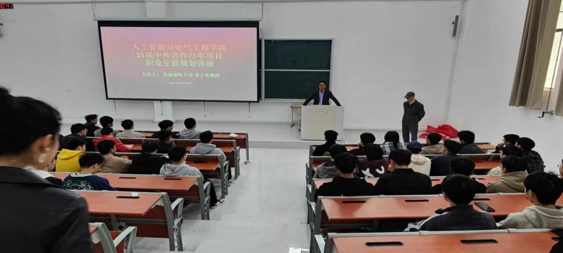 为进一步建设优良学风,助力我院中外合作办学学生更好地进行职业生涯规划。4月8日上午,我院在睿知楼B106教室举办电气工程及其自动化中外合作办学项目职业生涯规划讲座。副院长张均、贝德福特大学李大有教授参加本次讲座,学生科沈洁老师主持。21级电自合全体同学参加。