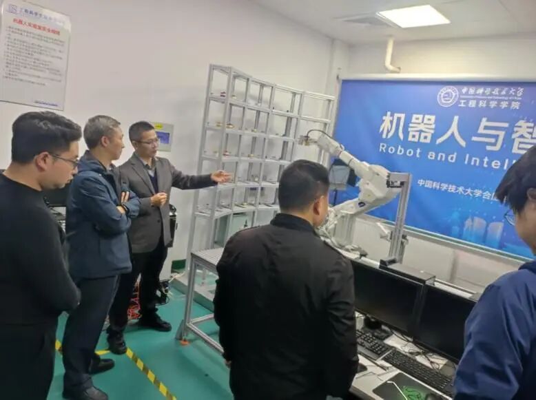 调研第二天,龙飞一行走访中国科学技术大学工程科学学院和皖西学院电气与光电工程学院。在中国科学技术大学,调研组重点了解其在人工智能与机器人方向的科研布局及研究环境,对科研团队运作模式和实验平台建设形成了更加直观的认识。随后在皖西学院电气与光电工程学院的调研中,调研组详细了解其作为第二批开设机器人工程专业高校所取得的显著进展。皖西学院电气与光电工程学院方杰院长,张春龙副院长,张进思院助分享了在专业结构构建、实践教学路径以及实验室运行方面的经验,对我院下一步推动专业内涵式发展具有较强借鉴意义。