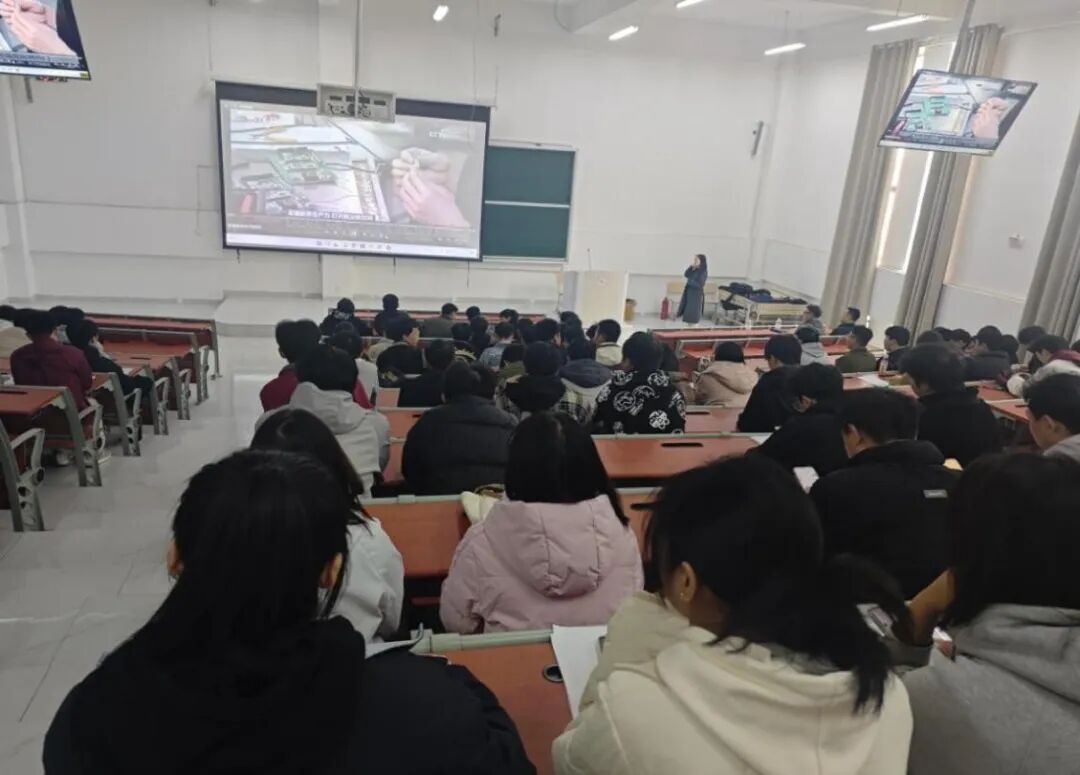在互动环节,同学们积极提问,就工作地点、职业发展路径、培训体系等方面与招聘人员进行了深入交流。招聘人员耐心解答同学们的疑问,同时结合公司在新能源领域的前沿布局,解读了企业的战略目标与人才需求,强调公司重视创新能力与实践经验,期待与学院学子携手共创能源未来。毕业班的同学们展现出了较高的专业素养和积极的求职态度,吸引了招聘人员的目光。现场有 80 余名同学投递了简历并在睿知楼C02-B110参加了笔试以及面试。