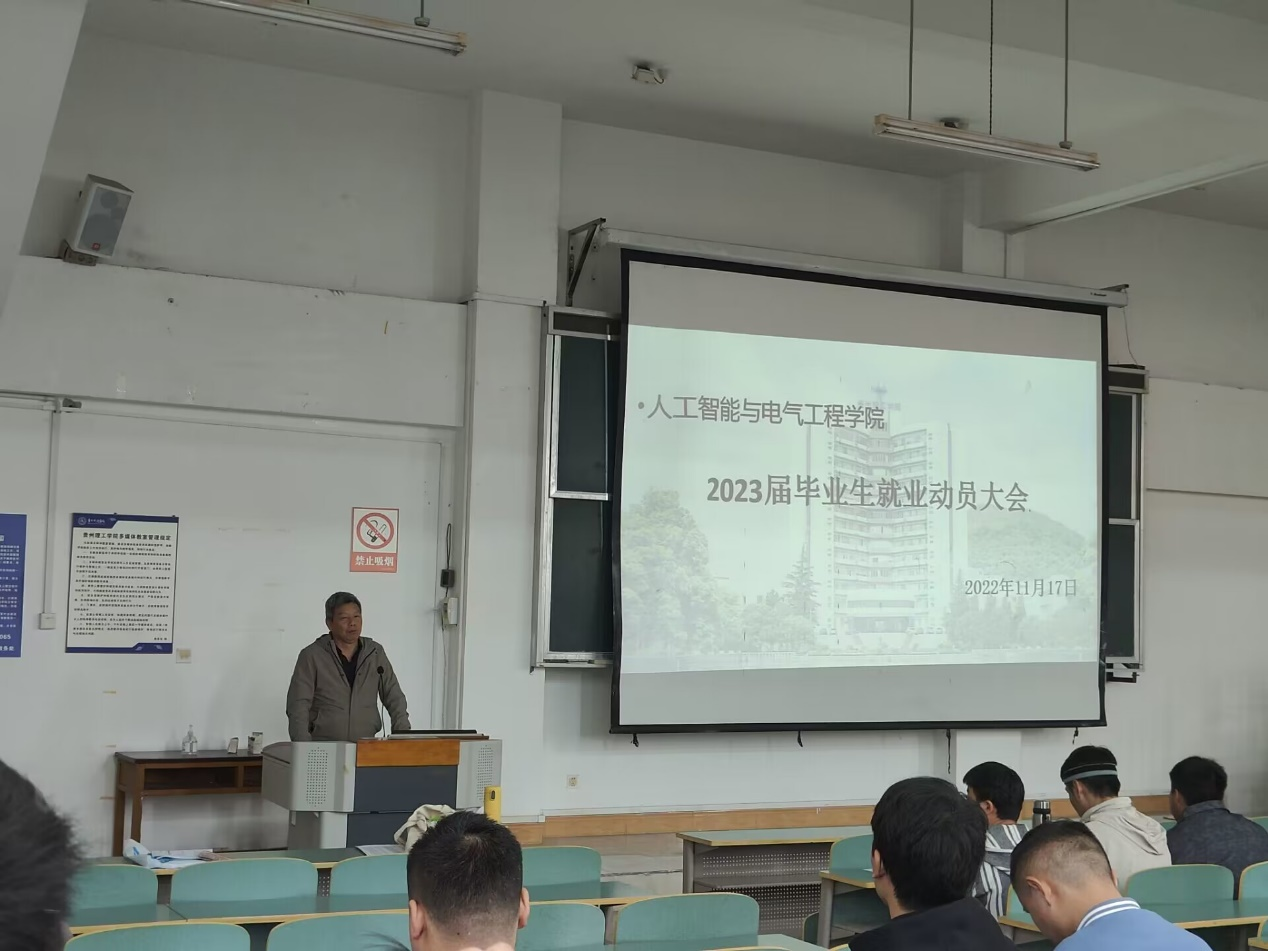 为全面推动落实人工智能与电气工程学院2023届毕业生就业工作,引导毕业生树立正确的就业观念,提高就业的积极性和主动性,实现主动就业、稳步就业。我院于11月17日13:00在3教416教室召开2023届毕业生就业动员宣传大会。学院党总支书记刘承章、副书记程星晶出席会议。全体毕业班班主任、354名毕业生参加会议。会议由人工智能与电气工程学院学生科陈心园老师主持。