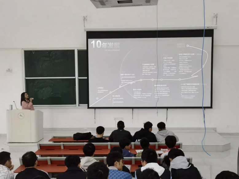 负责人冯金英首先介绍了公司的发展历程,公司的项目以及公司的客户等情况,还介绍了该单位的招聘要求、条件以及网申条件及方法等,并为同学们进行了答疑解惑。