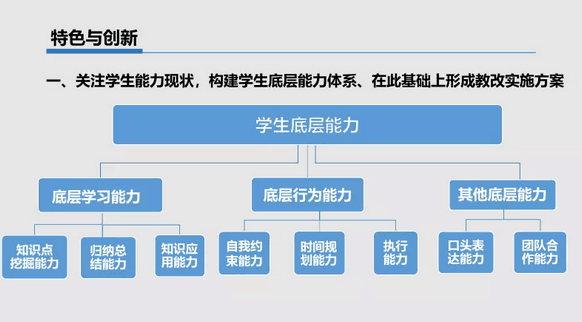我们把学生的能力现状梳理出来作为学生底层能力,底层能力包含底层学习能力:最基础的知识点挖掘能力、归纳总结能力和知识应用能力。还有底层行为能力,包括自我约束能力、时间规划能力、执行能力等都是非常重要的,其他底层行为能力还有口头表达能力、团队合作能力等等。我们整个教学改革和教学实施是在学生的这个底层能力体系的基础上再形成我们的教改实施方案。我们把教改实施方案中的几乎所有教学环节,包括课前、课堂、课后都尽可能地打造成学生能力的培养路径,以确保教学改革的有效性,让学生的高投入获得高回报。当然,为了确保教改有效性和学生的高投入切实得到高回报,我们教师团队付出了非常多的心血,我们围绕慕课视频建设了以学生为中心完整的配套教学资源,包括课堂的讨论问题和教学课件,都是进行配套设计的。
