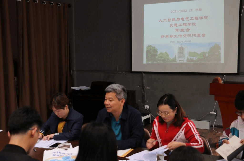 为进一步加强党建对团学工作的引领,同时加强学院之间团学工作的沟通和交流。2022年3月16日中午,人工智能与电气工程学院学生会、交通工程学院学生会在蜂巢召开新学期工作交流培训会。智电学院党总支书记刘承章出席会议,交通学院学生科科长苏利荣、两院学生会全体学生干部参加会议。会议由智电学院学生科科长顾英主持。