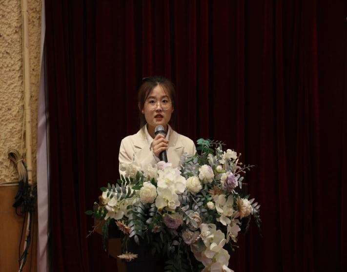 由工作人员宣读《人工智能与电气工程学院第六届团总支、学生会表彰获奖名单》。由优秀部门代表--刘超、优秀干部代表--邹亚彤、优秀干事代表--郑亦心、最佳贡献奖--姚柒龙分别进行发言。