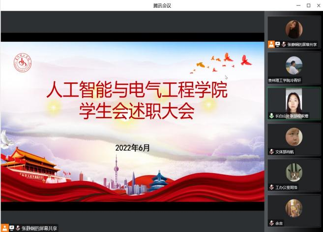 为深入贯彻落实学生会组织深化改革要求,推动完善学生会述职评议制度。2022年6月17日人工智能与电气工程学院学生会通过腾讯会议召开了学生会各部门负责人述职会议。学院团总支书记顾英出席本次会议,学生会主席团成员、各部门负责人参会。
