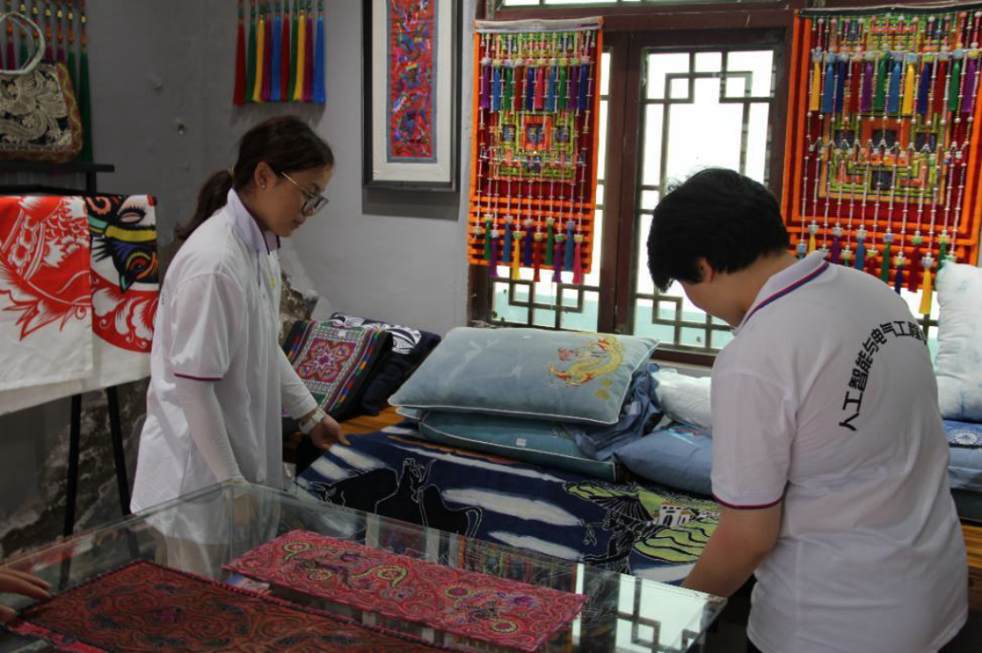 最后,团队成员们一起来到杨文丽的扶贫车间,参观一系列精美的手工苗绣服装和特色小饰品,感受浓郁的乡土气息和强烈的艺术感染力,深刻体会苗族文化的独特性和多样性。