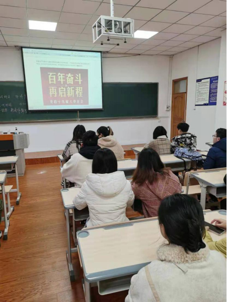 教师党支部为教师党员统一提供宣传短视频(8个数字带你学习六中全会公报、十个明确、十个坚持等主题的微视频),将党的十九届六中全会精神的重要内容,以不同的主题在课间对授课班级进行宣讲。教师党支部书记郭华华表示:“课间5分钟思政”是2021年教师党支部的创新工作方式,结合“三全育人”综合改革试点院(系)建设,及时将党的最新理论在学生中宣讲,引导学生坚定信念、关注国家发展。下一步将不断探索活动的新形式,丰富宣讲内容,把党的声音传达给更多的学生,营造浓厚的宣传学习党的理论氛围。