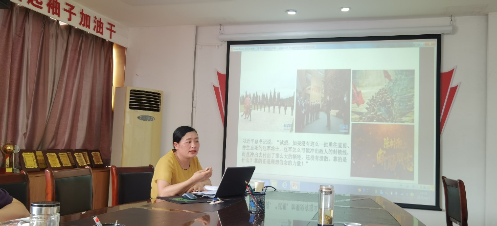 王老师讲到在中国共产党的领导下,党的面貌、国家的面貌、人民的面貌、军队的面貌、中华民族的面貌发生了前所未有的变化,在党的“母亲船”上孕育而生的“红船精神”,凝结着中国共产党人不变的初心和使命,警示我们走得再远都不能忘记从哪里出发、为什么出发。