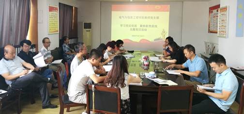 本网讯(电气与信息工程学院 刘帆)为进一步提升专业素养,使党员同志严守党的纪律,牢固树立纪律意识,2019年8月23日上午,我院教师党支部召开了“学习党纪党规 聚焦职责底线”主题党日活动。活动由教师党支部书记郭华华主持,全体教师党支部党员同志参加。