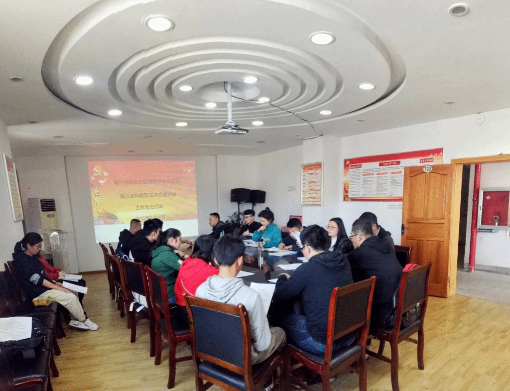 2019年3月20日下午,电气与信息工程学院学生党支部召开了“聚力本科教学工作合格评估”主题党日活动,会议由学生党支部书记郑玉娇主持,支部全体党员参加。