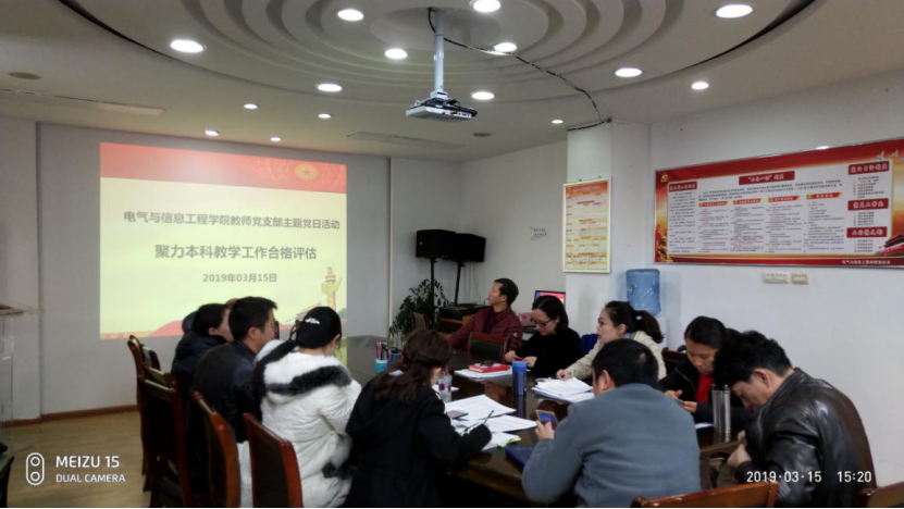 本网讯(电气与信息工程学院 刘帆)2019年3月15日下午,我院教师党支部召开了“聚力本科教学工作合格评估”主题党日活动,会议由支部宣传委员刘帆主持,支部全体教师党员参加。