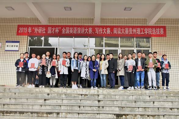 为进一步提升我校学生外语综合运用能力,促进英语学科竞赛,增强学生跨文化交际意识,开拓学生国际化视野,推动大学英语教学改革,大学外语教学部、创新创业中心联合土木工程学院共同举办2019年“外研社•国才杯”全国英语演讲大赛、写作大赛、阅读大赛贵州理工学院选拔赛。