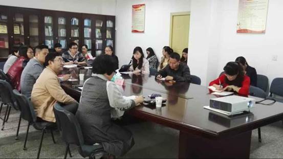 (大学外语教学部 王艳 报道)10月9日中午13:30,大外部全体教职工在综合楼11楼会议室举行本学期第四次集中学习暨集体教研活动,校党委书记曾羽应邀参加并对大外部工作进行指导。