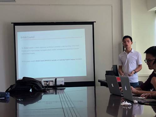 随后,按照教研活动安排,由李博文老师做雅思教学相关内容分享,内容涵盖雅思考试起源、雅思考试认可度、考试题型、评分标准、常用教学方法等。