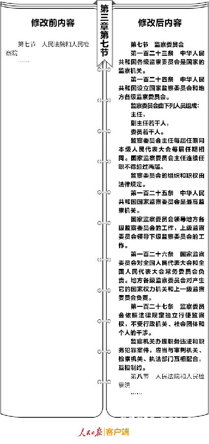 第五十二条 宪法第三章“国家机构”中增加一节,作为第七节“监察委员会”;增加五条,分别作为第一百二十三条至第一百二十七条。内容如下: