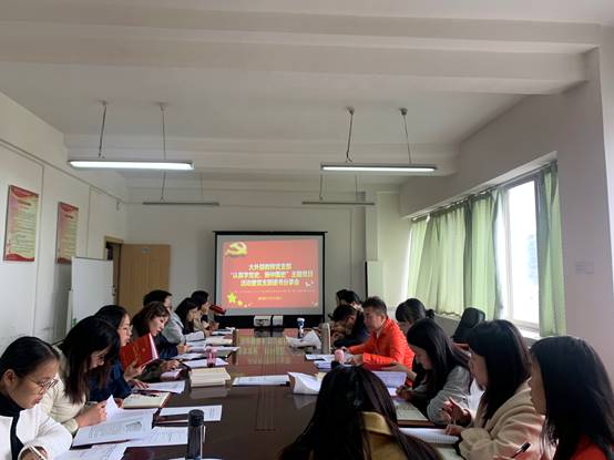 为进一步了解我们党领导人民进行艰苦卓绝的斗争历程,了解中国近代以来 170多年的斗争史、我们党98年的奋斗史、新中国70年的发展史,了解我们党的光荣传统、宝贵经验和伟大成就,11月15日上午,大学外语教学部教师党支部在行政楼1102会议室开展了“认真学党史、新中国史”主题党日活动暨党支部读书分享会。本次活动由教师党支部副书记吉胜芬主持,全体党员参加。