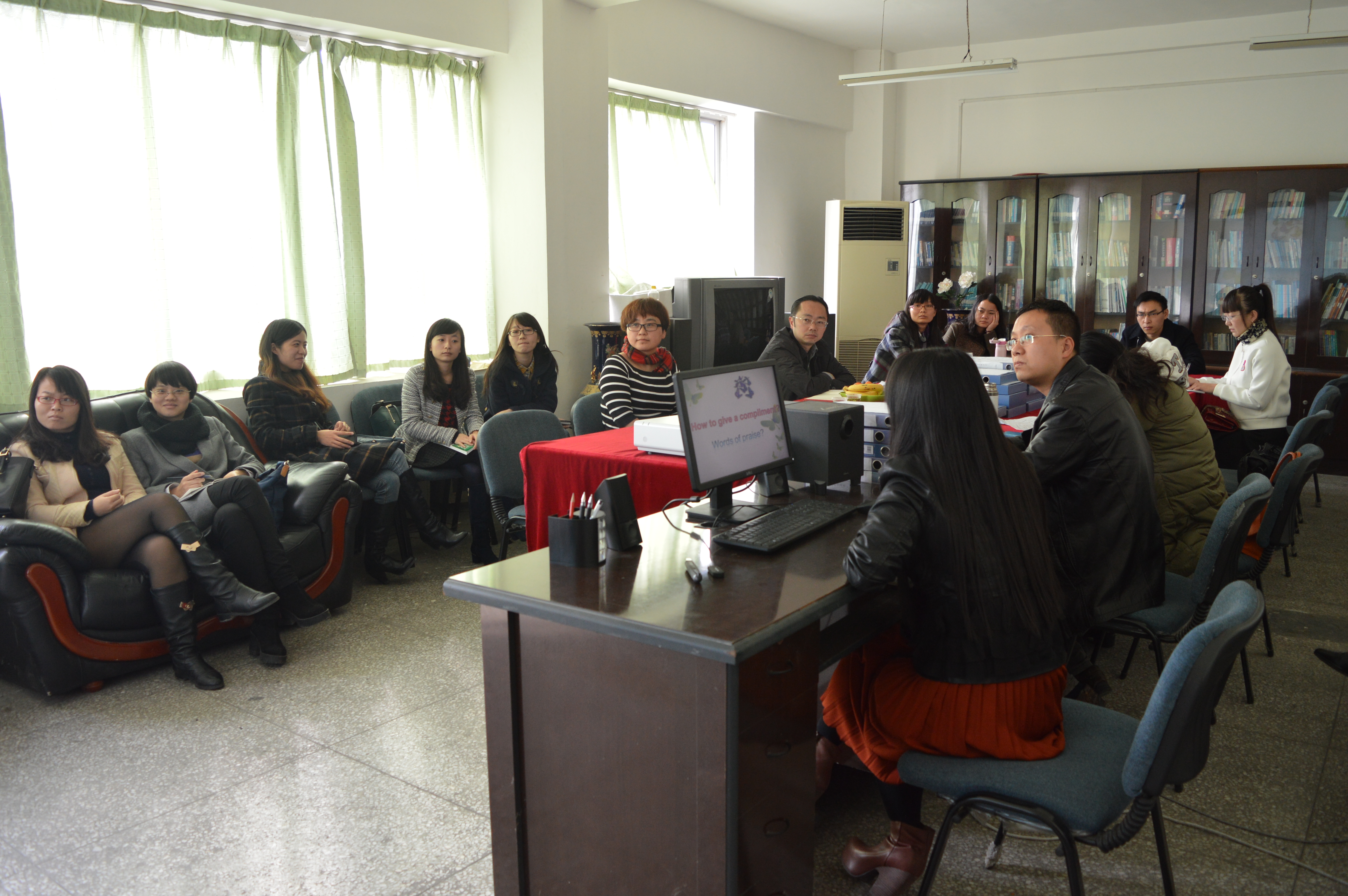 2014年11月28日,大外部新进教师在部门会议室进行了试讲。五位新来的教师以贵州理工学院正在使用的英语教材为例,截取不同的主题进行了风格迥异的讲课。有的从讲课材料的特点出发,特色鲜明生动有趣;有的从学生实际情况切入,务实勤恳;有的教师充分利用多媒体设备和社会热点,深入浅出。试讲完毕后,周丽主任充分肯定了新进教师们的热情和积极探索主动钻研的精神,鼓励他们在教学的实践中不断完善自己,更好地激励和引导学生进行外语的学习。随后,大学外语教育部的教师们相互借鉴经验,讨论问题,在自由民主的氛围内对本学期的英语教学进行了交流与总结。