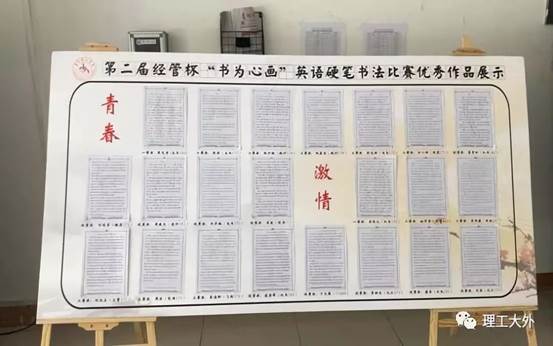 为弘扬书法魅力,阐释书法精神,2018年5月16日,由大学外语教学部主办,经济管理学院承办的“书为心画”英语硬笔书法大赛拉开帷幕。此次比赛以“毕业季”为主线,从青春、激情、寻找和收获四个主题献礼即将毕业的理工学子。