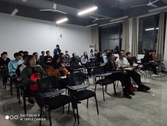 本网讯(外国语学院 徐丽丹)10月30日晚外国语学院徐丽丹老师在蔡家关校区的三教516教室举办了题为《大学英语四级的诗和远方》的讲座。本次讲座首次采用线下现场讲演和钉钉线上同步直播的方式进行,覆盖了蔡家关校区和贵安校区,来自全校各个学院各个专业的同学聆听了此次讲座。