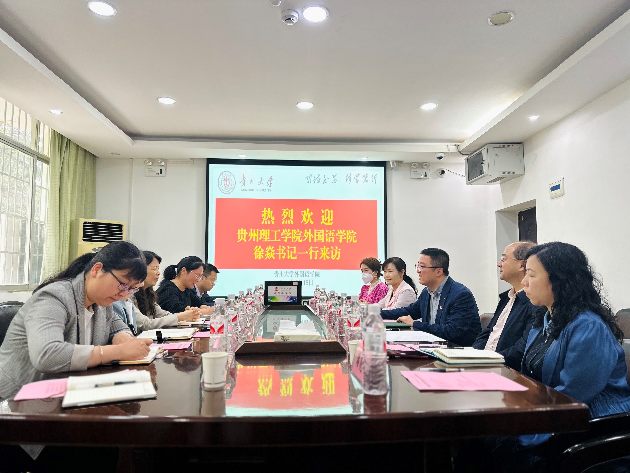 本网讯(外国语学院 王艳)为学习借鉴省内兄弟院校先进教育教学工作经验,5月15日上午,由学院党总支书记徐焱带队,一行6人赴贵州大学外国语学院开展调研交流座谈。