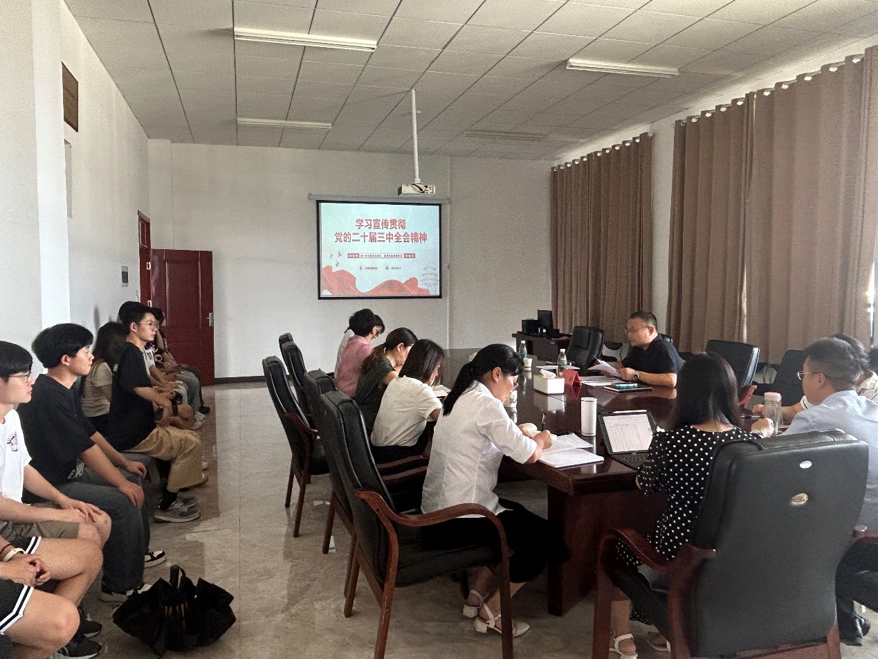 本网讯(外国语学院王艳)9月14日下午,副校长杨鹏到外国语学院宣讲党的二十届三中全会精神。外国语学院领导班子成员、各科室负责人以及学生代表参加宣讲会。