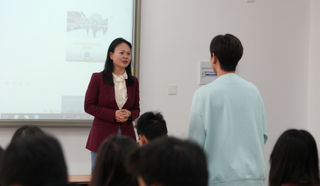 本网讯(外国语学院 黄超禹)2025年3月25日上午,校党委委员、纪委书记、监察专员贺梦依在开物楼1117教室为外国语学院英语231班召开主题班会,与外国语学院学子面对面交流。学院党总支书记徐焱、党总支副书记杜玉红、辅导员黄超禹及英语231班全体同学参加。