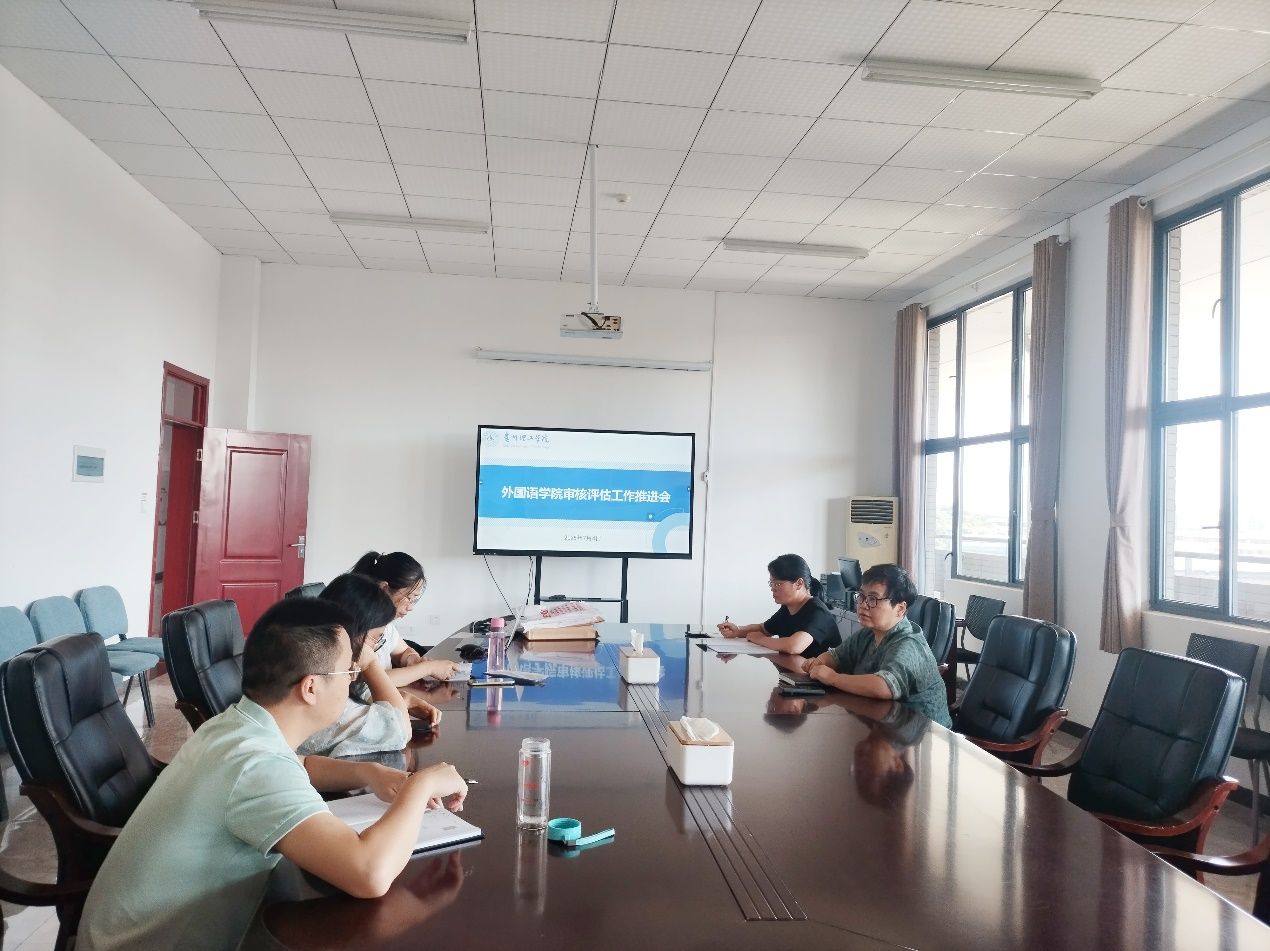 本网讯(外国语学院 王艳)为全力推进学院本科教育教学审核评估工作,外国语学院7月16日在开物楼1524会议室召开本科教育教学审核工作推进会。会议由学院院长主持,相关分管工作院领导、各科室、各教研室及实验室负责人参加会议。