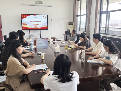 本网讯(外国语学院 邓冶)2025 年6月20日,外国语学院教师党支部在开物楼1524会议室开展了六月主题党日活动。会议由教师党支部书记李丽主持,外国语学院教师党支部全体党员参加。