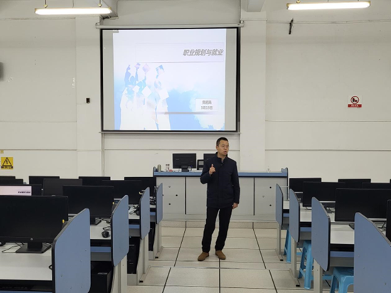 本网讯(外国语学院 黄超禹)毕业后将何去何从是广大学子关注的焦点,为更好促进我院学生充分就业,3月13日,外国语学院学生科负责人黄超禹在蔡家关校区三教516教室为我院2020级学生开展职业规划与就业专题讲座,旨在帮助同学们解决求职过程中的疑惑,引导同学们树立正确择业观、就业观,进而在竞争日益激烈的就业市场中找到心仪的工作。