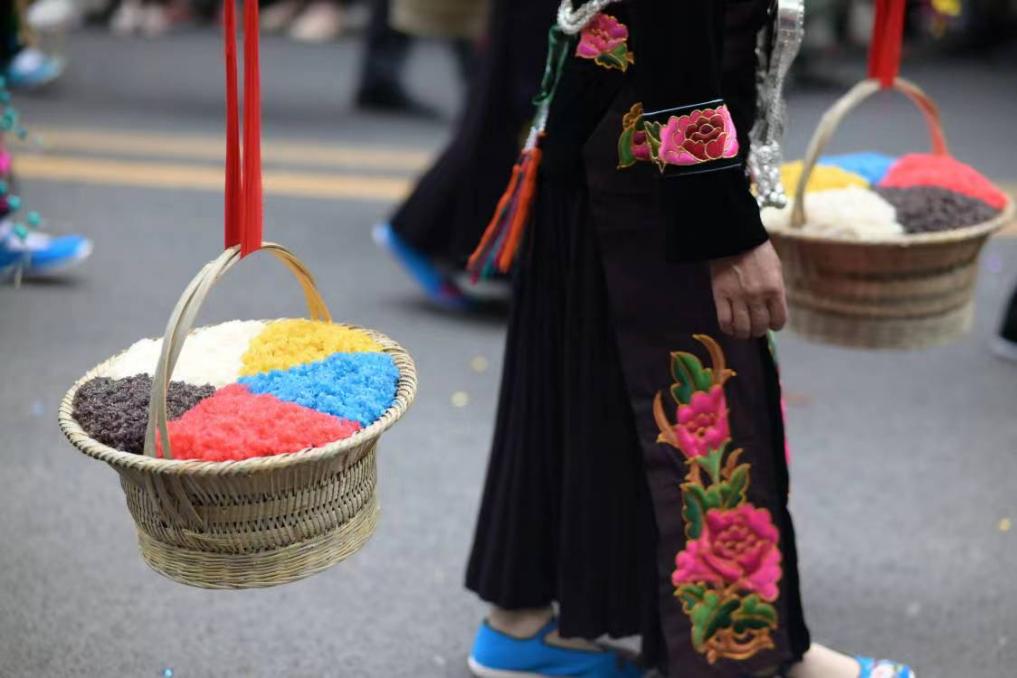 The Sister Festival of Miao people in Chinese is a term used to refer to the traditional Miao culture. It is called Nongx Gad Liangl(垄嘎粮)in the local Miao dialect. "Nongx" in Miao language means "eat", "ga" means "meal", while "LiangL" means "satisfy one's desire ". Nongx Gad Liangl means that young men and women come together for dinner,to fulfil sisters’ and friends’ wishes without regret.