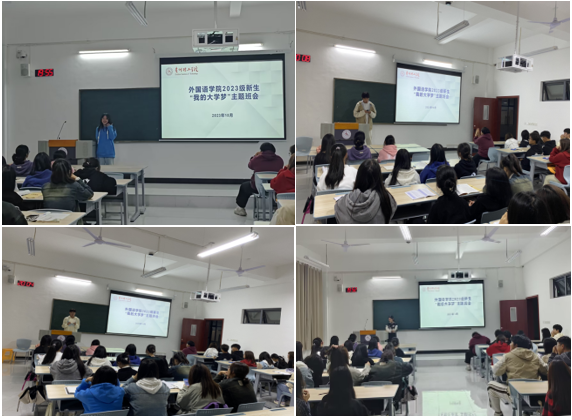 本网讯(外国语学院 黄超禹)新开始、新起点,在步入大学之初,为了引导新生们合理安排大学学习生活,培养规划意识,让大家明白在大学学习生活的意义,10月12日晚,外国语学院组织2023级新生在敏学楼213教室召开了一场别开生面的班会,班会的主题为“我的大学梦”新生成长对话课,由2023级辅导员黄超禹主持,2023级全体同学参加。