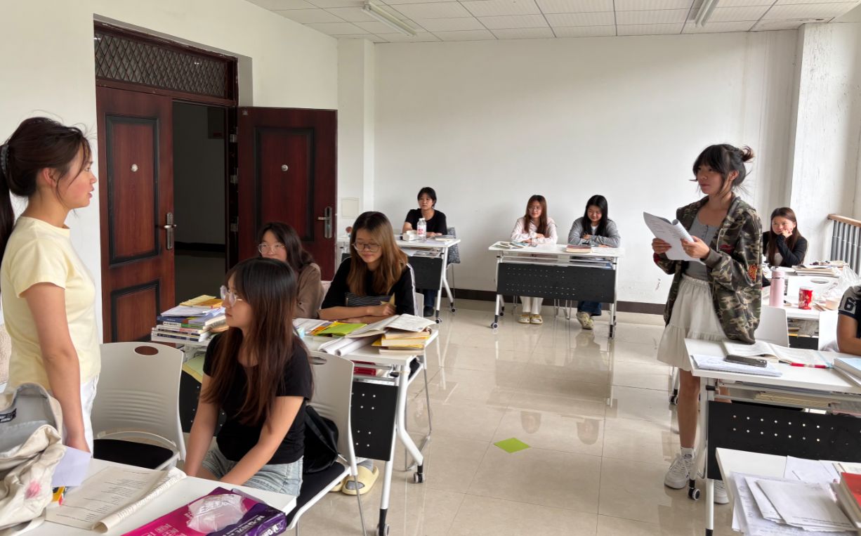本网讯(外国语学院 黄超禹)为全面做好本科教育教学审核评估准备工作,帮助同学们充分认识审核评估的重要意义。2025年9月23日下午,外国语学院学生科负责人黄超禹组织各班级学生干部和学生代表在“一站式”社区五楼乐学驿站活动室学习本科教育教学审核评估应知应会知识要点。