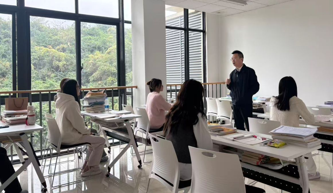 本网讯(外国语学院 黄超禹)2025年10月23日上午,外国语学院学生党支部书记、学生科、团总支负责人黄超禹在一期4号公寓“一站式”社区组织党员、党的发展对象、入积极分子深入学习学校第三次党代会精神。