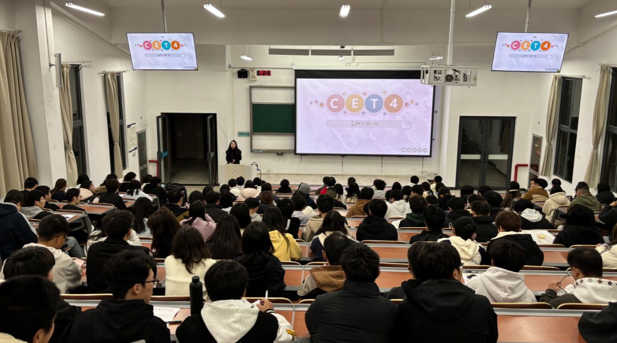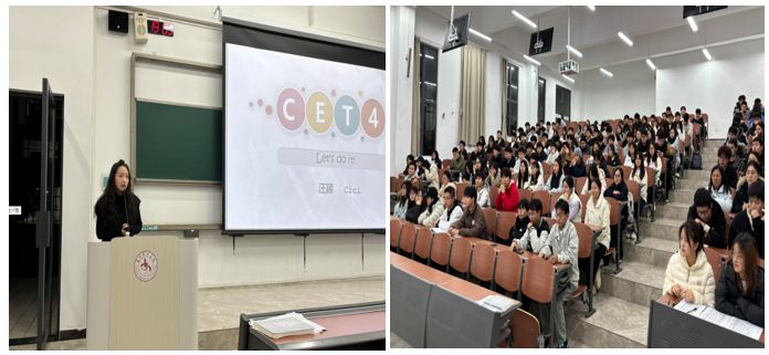 本网讯(外国语学院 黄超禹)为进一步提升我校学生英语水平,帮助学生顺利通过大学英语四级考试,由外国语学院策划、学生工作部统筹的秋季学期“学在理工”大学英语四级专题辅导系列讲座于2025年11月13日晚在天工楼G2109阶梯教室如期开讲。本次讲座重点聚焦四级听力这一“失分重灾区”,精准破解“听不清、记不住、选不对”的备考难题,为全校近200名学生送上系统化的听力提分攻略,助力大家高效备战大学英语四级考试。
